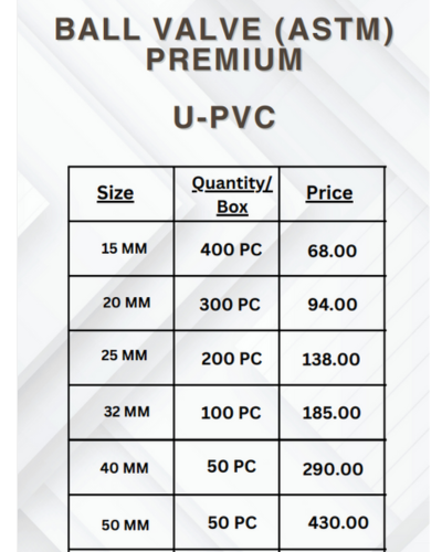 MKBK India Pvt Ltd presents premium ASTM-compliant U-PVC Ball Valves, setting a benchmark in plastic plumbing solutions. Crafted with precision and durability, these valves ensure seamless control of water flow in plumbing applications. The U-PVC material guarantees longevity, resisting corrosion and providing reliability. Ideal for various plumbing needs, MKBK's U-PVC Ball Valves showcase the company's commitment to delivering top-notch, innovative products, fulfilling the demands of modern construction and plumbing projects.